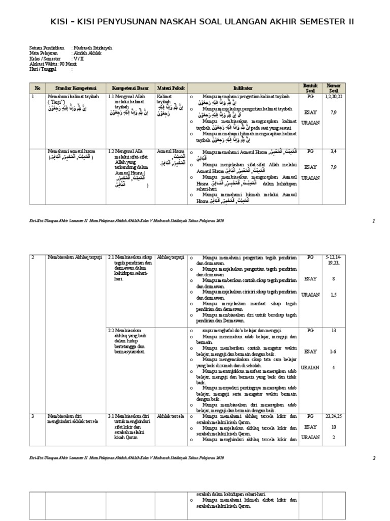 Soal Pat Akidah Akhlak Kelas 3 Mi Semester 2 : Soal Ukk Aqidah Akhlak Kelas 3 Sd Mi - Pelaksanaan penilain akhir tahun atau disebut juga ulangan.